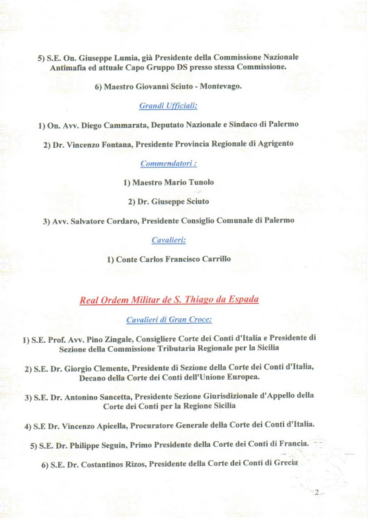IN ONORE DI SAR DOM ROSARIO E DEI SUOI OSPITI ANCHE ITALIANI PRESENTI IN OCCASIONE DELLA CERIMONIA DI INVESTITURA TENUTASI IN LISBONA.
